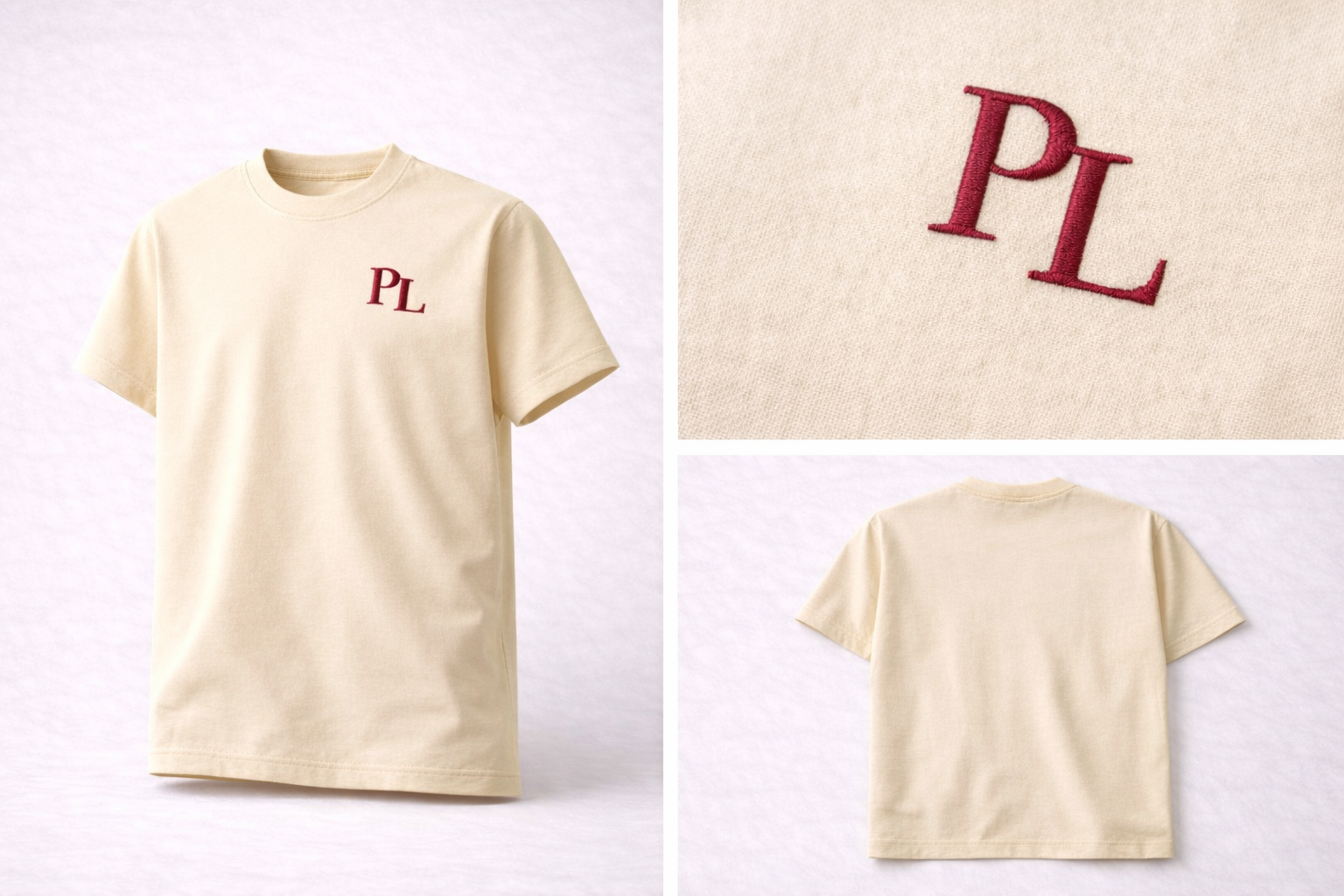 Soft cream with Bordeaux PL emblem. French Riviera vibe.